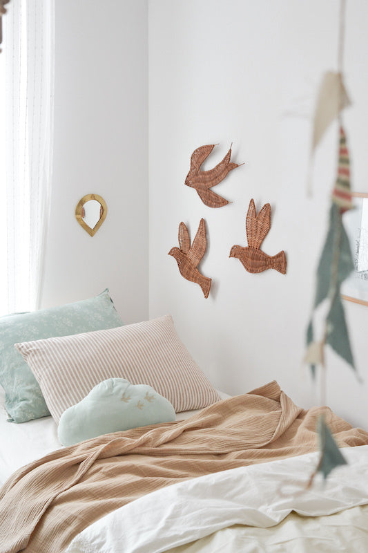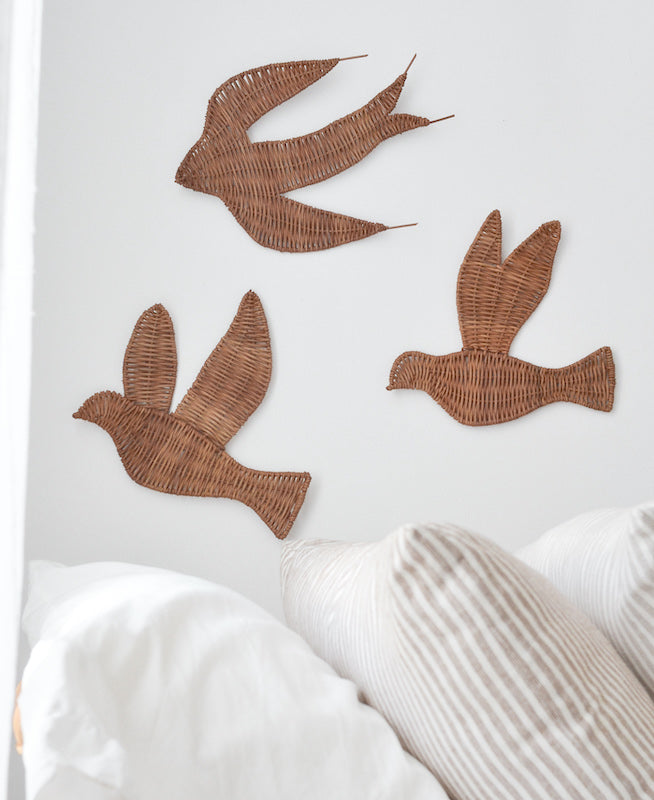 Ajoutez une touche de douceur bohème à votre intérieur avec nos hirondelles murales en rotin. Légères et élégantes, elles évoquent la liberté, le mouvement et la nature. Le rotin, matériau chaleureux et authentique, apporte une texture naturelle et un charme artisanal à vos murs.
