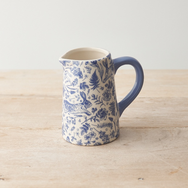 Craquez pour ce petit pichet bleu décoré de fleurs et d’un adorable lapin, parfait pour apporter une touche douce et lumineuse à votre intérieur. Idéal en mini-vase, objet déco ou accessoire de table, il séduit par son style délicat et ses couleurs apaisantes. Une jolie idée cadeau pour les amoureux de décoration pleine de charme.