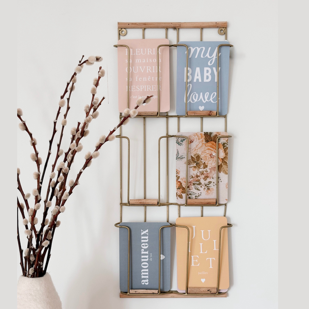 Apportez une touche élégante et bohème à votre intérieur avec ce porte-cartes Madam Stoltz. Son design en métal doré allie praticité et raffinement, parfait pour exposer cartes, photos ou notes. Fixé au mur, il optimise l’espace tout en ajoutant une touche scandinave, vintage ou industrielle à votre décoration. Un accessoire mural déco aussi beau que fonctionnel !