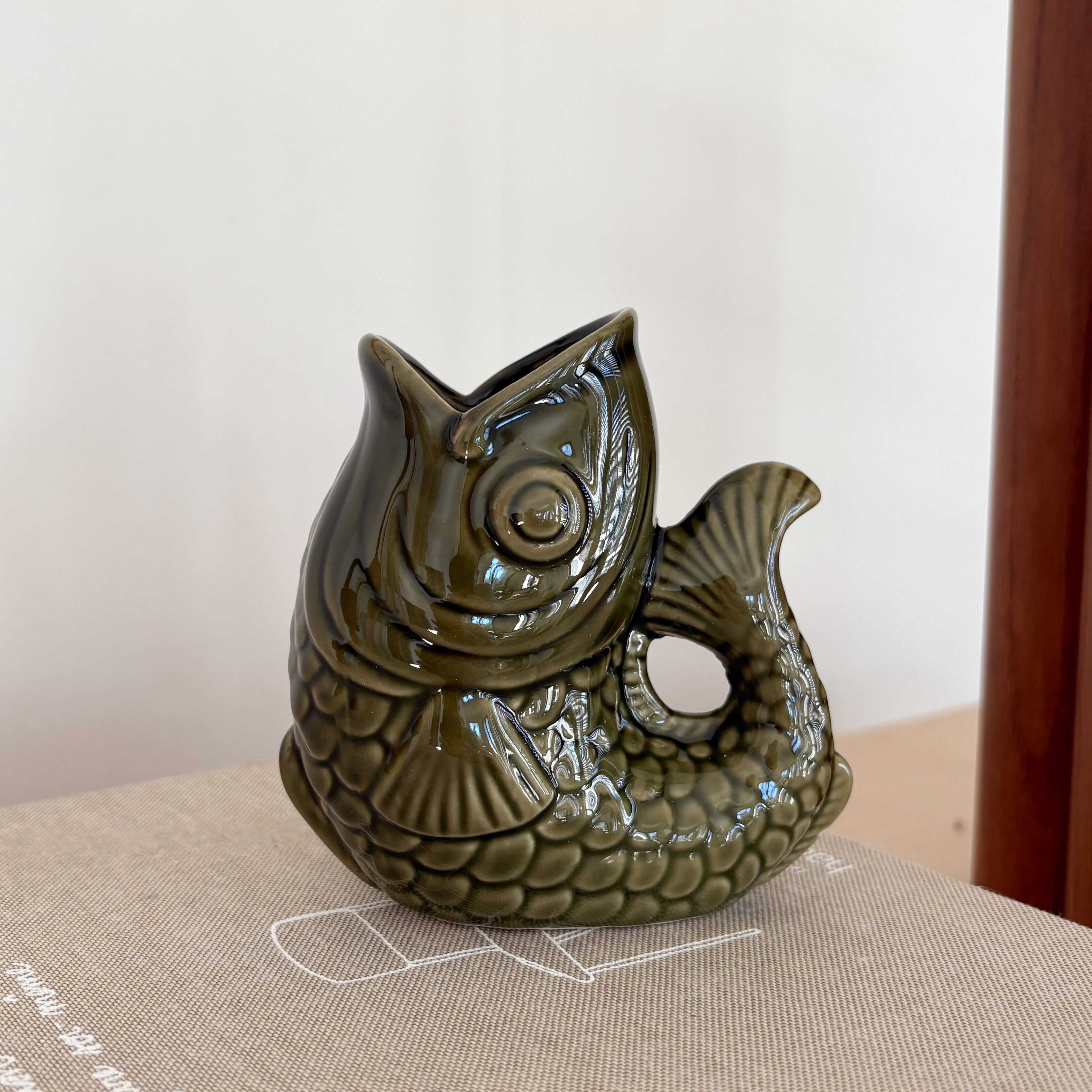 Petit vase poisson kaki en céramique