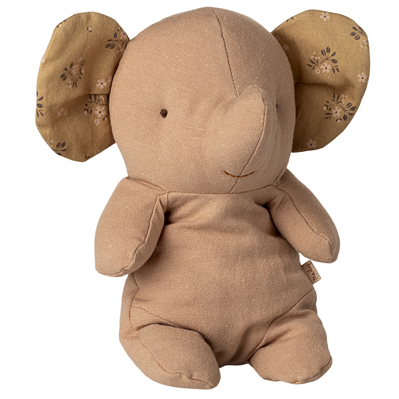 Dans la belle collection Safari Friends de la marque danoise Maileg, l'éléphant gris est une figure à part. Fabriqué dans un lin d'une douceur remarquable, avec ses microbilles logées dans son assise, il a ce petit quelque chose de magique : il tient assis tout seul, comme s'il vous attendait sagement au bout du lit ou sur une étagère.